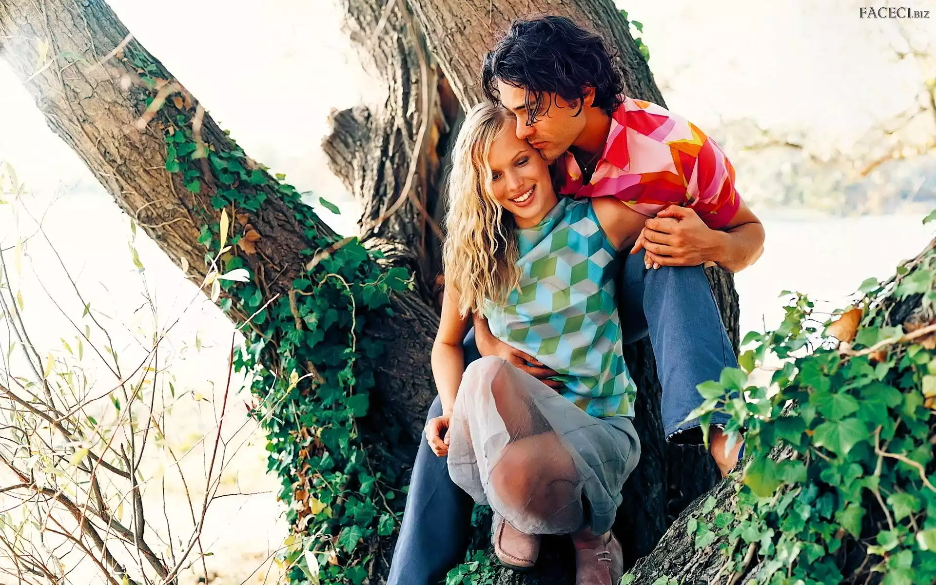 Chłopiec, Para, Liście, Drzewo, Dziewczyna, Zakochani - faceci.biz
